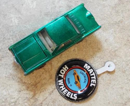 | 1968 Redline Hot Wheels Custom Continental Mark III Dark Green W/ MATTEL BUTTON Sold $85.00