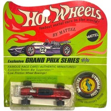 Note: Grand Prix Series. Produced only in Hong Kong. Most versions come with a black interior, but variations exist with tan and white interiors as well. These do add a premium. There is also a very, very rare version that has twin plastic fuel tanks on either side. These may be considered prototypes, as they have never been found in blisterpack. Keep an eye out for the gold chrome version; while not rare, it is highly collectible.