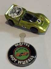 Original Vintage Hot Wheels Redline 1969 McLaren M6A Metal Button Badge Pin Nice