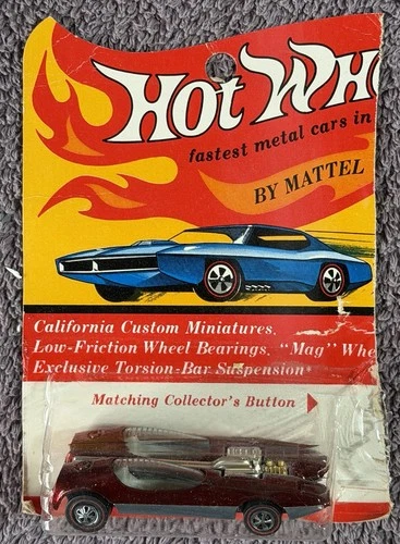 | Redline Hot Wheels Splittin' Image RED 1968 Cut Blister Pack Diecast Car Sold $99.99