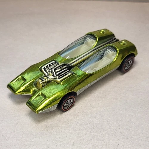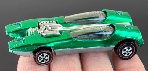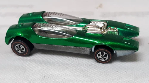 | very clean vintage redline hot wheels splittin image in green, silver headlights Sold $75.00