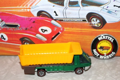 | Hot Wheels Redline Heavyweights 1969 Green Dump Truck (HK) Dark Int, Badge Sold $40.00