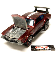 Note: The front end of the U.S. casting has a completely painted black grille, while the Hong Kong version stops at the headlights. Keep an eye out for very rare brown interior/wing variations, as well as the HK-only black roof variations, which are highly valuable. Model was originally called Mad Maverick, but was changed. If you have a base with Mad Maverick on it, then you've got a very rare version, as a few managed to get out. The entire rear wing MUST be present in order for this model to be considered complete.