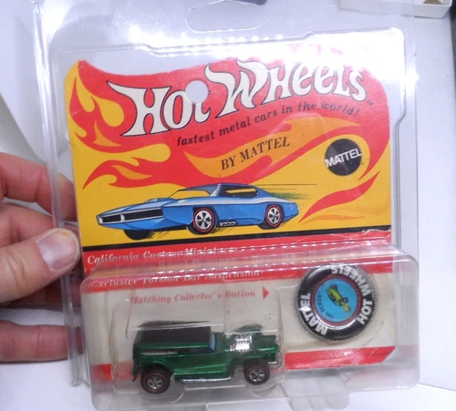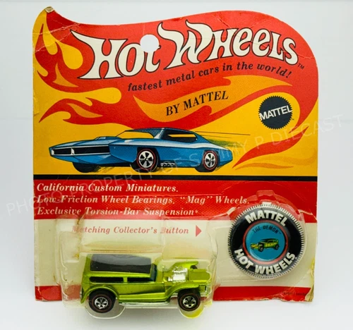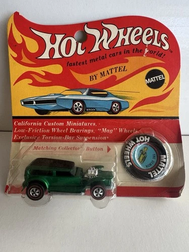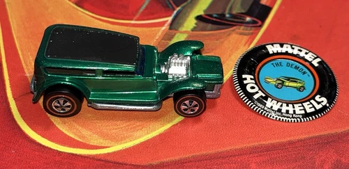 | HOT WHEELS REDLINE THE DEMON w/ PLASTIC BUTTON -Green-ORIGINAL 1969 - MOC Sold $275.00