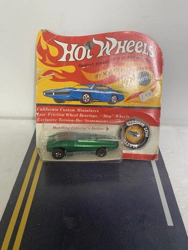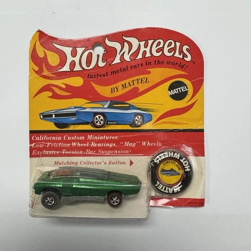 | 1968 Hot Wheels Redline Whip Creamer Green Sweet 16 Carded w/ Collector Button Sold $440.00