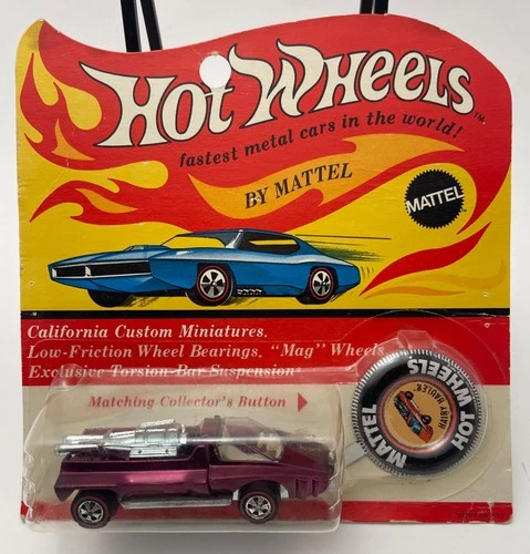 | Hot Wheels Redline Hairy Hauler Magenta Carded w/ Button 1969 Sold $214.27