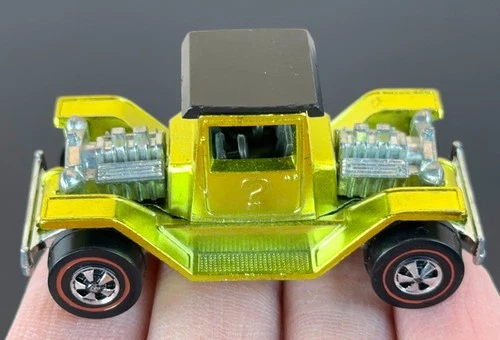 | Hot Wheels Redline T-4-2, #6177 from 1971, in glowing Lime Green Spectraflame. Sold $69.00