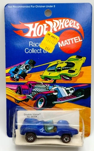 | Hot Wheels Redline Double Vision Dark Blue Enamel 1973 Torn Card Sold $129.00