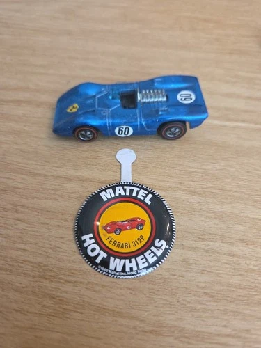 | Vintage 1969 Hot Wheels Ferrari 312P Blue Redline Car + Bonus Hot Wheels Button Sold $249.99
