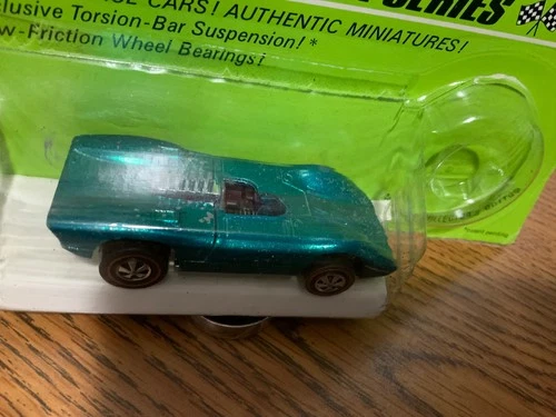 | Aqua Hong Kong Ferrari 312P in half package Hot Wheels REDLINE has paint pricks Sold $160.00