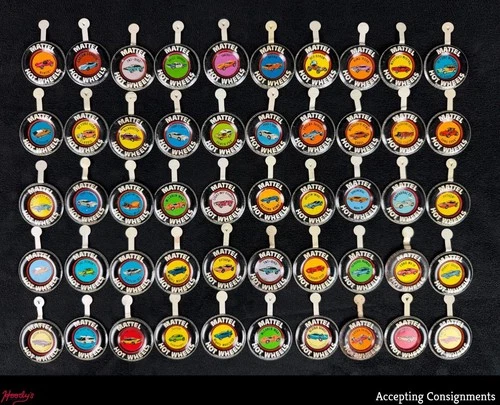 | LOT of 50 Vintage Original 1967-1969 Hot Wheels Redline Button Badge Sweet 16 Sold $230.39