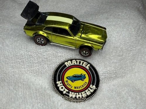 | Hot Wheels Redline 1969 Mighty Maverick Green W/ Button Pin Car Vehicle 1:64 Sold $219.95