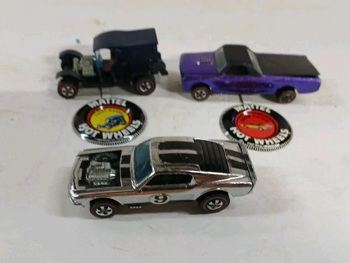 Lot of 3 Vintage Redline Hot Wheels Fleetside, Boss Hoss, and Paddy Wagon w Pins