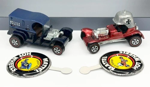 (2) Vintage Hot Wheels Redline 1970 Red Baron & Paddy Wagon w/Badges NICE READ!