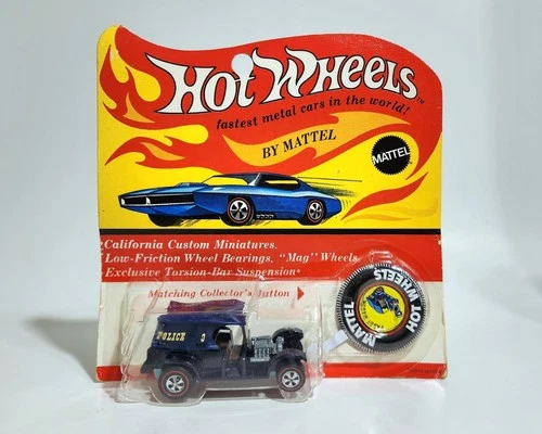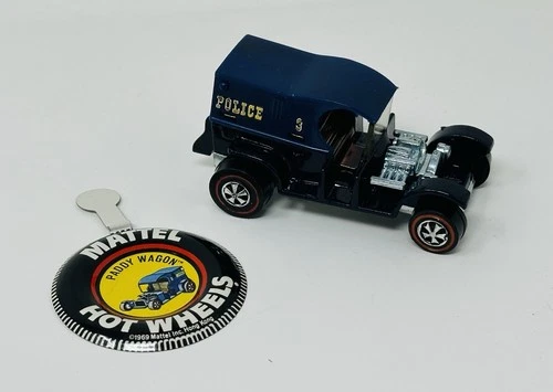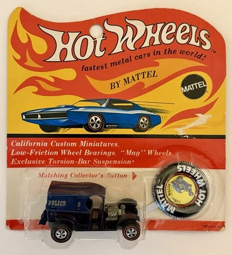 1969 Mattel Hot Wheels Redline Police Paddy Wagon & Button ~ New in Package