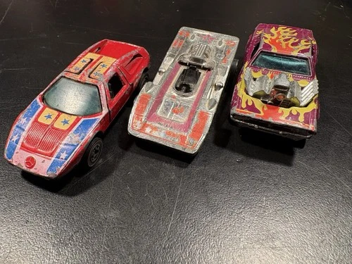 | Hot Wheels Redline 3 Car Lot Mercedes Benz, Rodger Dodger, Steam Roller 1974 Sold $37.00