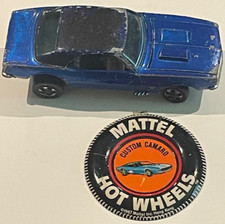Vintage Hot Wheels Redline 1967 Custom Camaro Blue HTF Original Badge