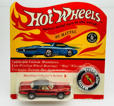 Vintage 1967 Mattel Hot Wheels Red Custom Eldorado Redline Hong Kong Tin Button