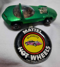 | 1968 Hot Wheels Redlines Silhouette Green Button Badge Car USA Dark Interior Buy it Now $55.95 |