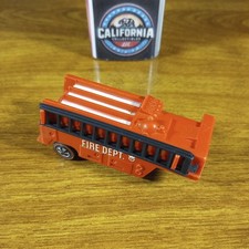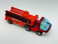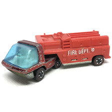 Note: Heavyweights Series. Produced only in Hong Kong. The truck cab is the "stubby" sized version, but this casting has the distinction of the longest in the Heavyweights series. The red plastic trailer has a decal that says "Fire Dept." and a small shield.