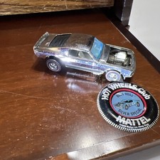 Vintage Hot Wheels Redline Mustang Boss Hoss, Chrome, 1968, w/ badge πŸ‘€