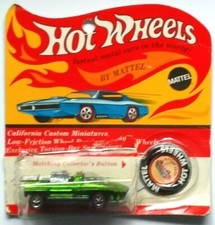| 1968 Hot Wheels Redline Hairy Hauler Spectraflame Green Carded w/ Button Mattel Buy it Now $600.00 |
