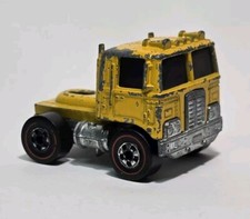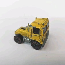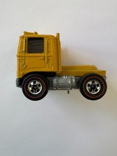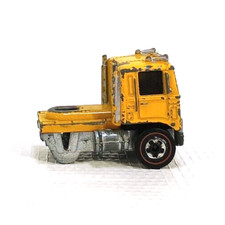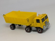 Note: Designed by Larry Wood and produced in Hong Kong. Issued only in the Mountain Mining set. Has a side-dumping yellow plastic bed, with a metal base and Redline wheels. The truck was attached to the track by a hidden pulley chain with a hand crank. Never issued in blisterpack. The dumpster must accompany this model in order for it to be considered complete.