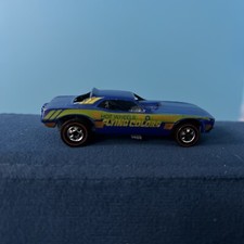 Note: Produced in Hong Kong. Orange, green and yellow tampo on the sides, with "Hot Wheels", "Fying Colors" and various sponsor logos. As with the 1971 and 1973 versions, there is no prop bar.