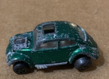 Note: Produced in Hong Kong. The sunroof was removed for this reissue. A difficult-to-find variation exists where stripes were originally on the trunk and hood. The tampo was changed to a yellow and green bug on the roof instead, due to the difficulty of lining up the stripes.