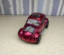 Note: Produced in Hong Kong. The sunroof was removed for this reissue. A difficult-to-find variation exists where stripes were originally on the trunk and hood. The tampo was changed to a yellow and green bug on the roof instead, due to the difficulty of lining up the stripes.