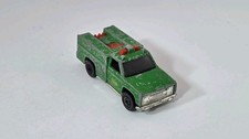 Note: Produced in Hong Kong. Green body with assorted yellow tampos on the sides. Brown plastic interior, and chrome plastic chassis. Smoked windows.