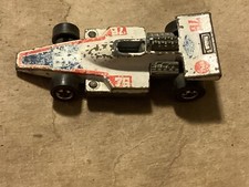 Note: Designed by Larry Wood and produced in Hong Kong. Metal chassis and interior. White body with red, white and blue striping, and number "76". Also issued in 1976 Super Chromes 6-pack.