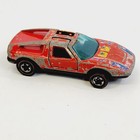 Note: Produced in Hong Kong. Red body with gull wing doors. White, blue and yellow star tampos on hood and roof. Black interior. Chrome base has never been found in blisterpack.