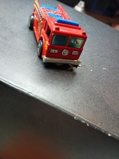 Note: Designed by Larry Wood and produced in Hong Kong. Red body with blue plastic light bar on the roof. Yellow and black fire truck tampos on the sides. Chrome plastic chassis with translucent blue interior.