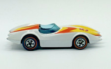 Note: Speed Racer-type body style. White body with red, yellow and purple stripe tamp on the hood and rear deck. Number "5" on the hood. Black plastic chassis, with black plastic interior.
