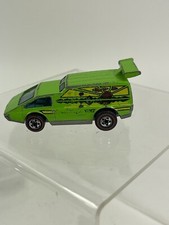Note: Designed by Larry Wood and produced in Hong Kong. Green body with yellow, red and black sunset tampo on the sides. Metal chassis, with translucent blue interior. Two small windows in the back (this will become relevant later, as it was re-issued with one large window in 1980).